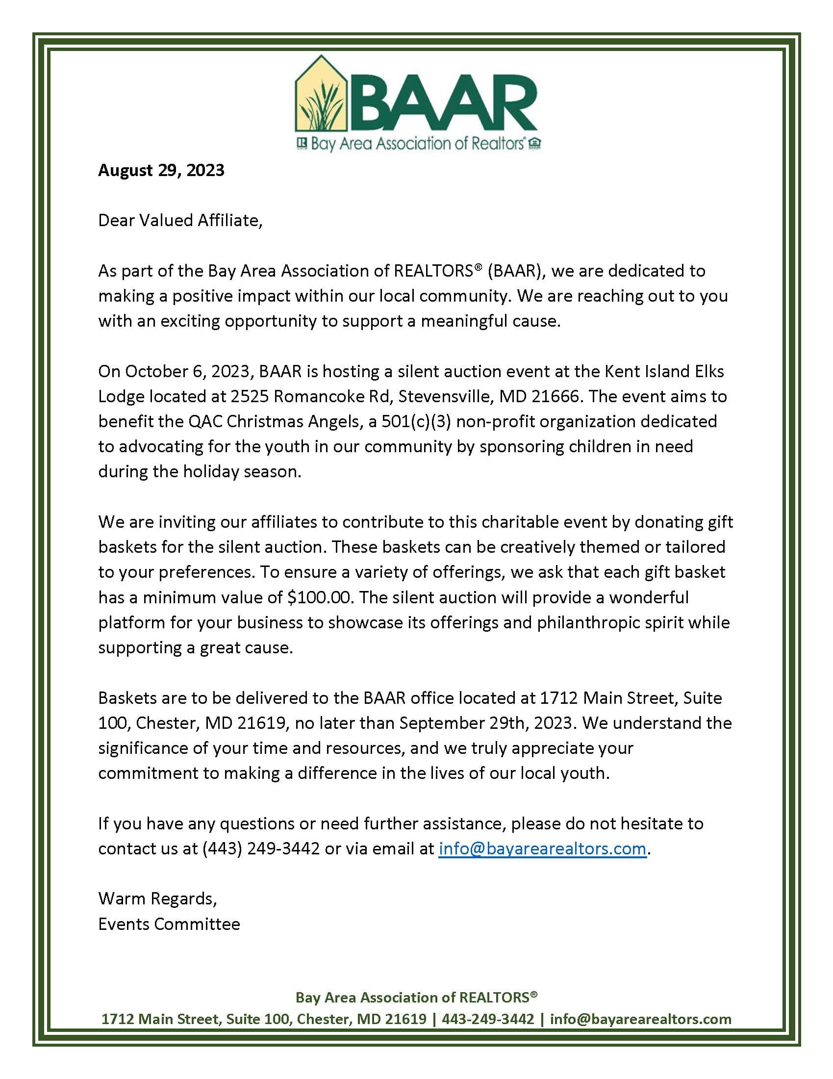 If you'd like to offer a basket for the auction, please see the letter below for details and email us if you are interested!